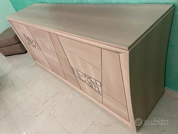 Vendo mobile come in foto. Parliamo di un oggetto di alta qualità, informarsi per credere. Misure: larghezza 215cm, profondità 55cm ed altezza 91cm. Apertura ante e cassetti con sistema push/pull e ripiani in vetro all’interno delle ante.