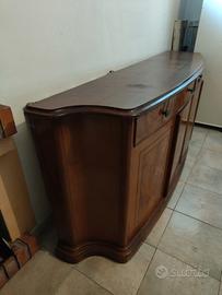 Vendo credenza (madia) in legno, stile classico. Mobile solido e stabile, composto da 4 ante a battente e 4 cassetti superiori. Finitura in tonalità noce, fronti leggermente sagomati, piano superiore in legno. Presenti normali segni di utilizzo, in particolare usura visibile sul piano (come da foto). Adatta come mobile da soggiorno, sala da pranzo, taverna o ambiente rustico/classico. Ritiro, carico e trasporto a cura dell’acquirente.