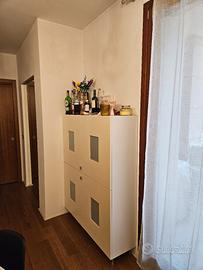 vendo credenza/madia bianca con profili e ripiani in vetro, H150 L160 P34.