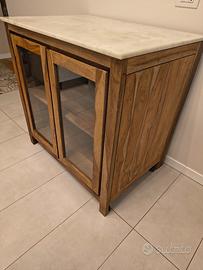 Vendo credenza Maison du Monde in buono stato legno esotico sportelli in vetro e piano in marmo. misure : altezza 90, larghezza 90, profondità 65