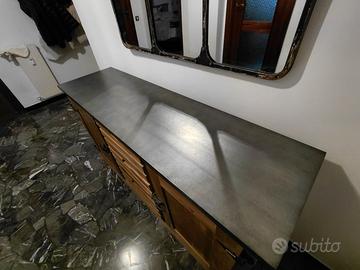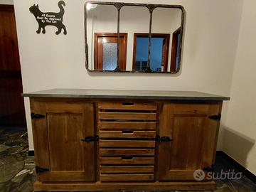 mobile di "maisons du monde" in legno di pino , finitura legno naturale invecchiato, piano rivestito in metallo zincato con finitura anticata, dimensioni 160x46x85h, non esitate a contattarmi per ulteriori foto/info.
