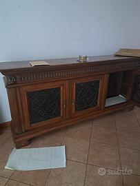 credenza da soggiorno in legno massicci 3 ante e grata in ferro battuto lunghezza circa cm 180