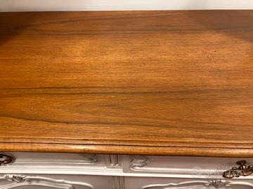 Credenza in legno shabby chic restaurata e dipinta, con un bellissimo piano in legno grezzo idratato con le cere protettive