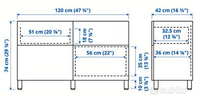 Credenza/mobile Besta Ikea, combinazione 2 ante e 2 cassetti completo di gambe. Dim. 120x42xh74cm. Sistemi di apertura push-pull.