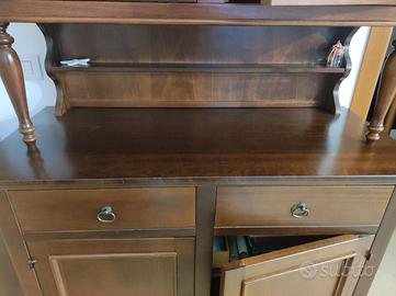 Credenza mobile sala in noce vintage, altezza circa 2 m, larghezza 110 cm, profondità 48 cm alla base e 40 cm in alto. Due cassetti, 4 sportelli, due ripiani interni. ritiro zona Gessate/ Gorgonzola provincia di Milano. Perfettamente conservato.