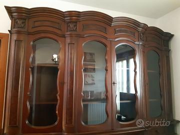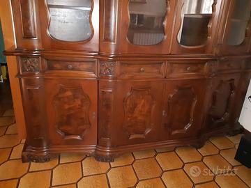 Regalo credenza in legno massello con radica, in buono stato sono 2 pezzi ritirabile a piano terra. misure: Altezza 238cm larghezza 250cm profondità 55cm