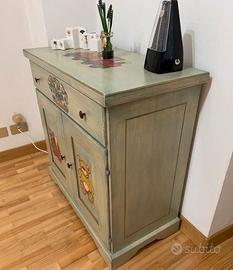 Vendo Credenza/Mobile TV in legno, di fattura artigianale decorato a mano, ottime condizioni. Dimensioni: altezza 780mm , larghezza 800mm e profondità 400mm. un cassettone e due ante .