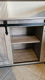 Vendo per inutilizzo credenza/Mobile da Cucina/ Armadietto Organizzatore con 2 Ante Scorrevoli e ripiani regolabili all'interno in colore grigio tortora e nero. Piedini regolabili. Materiale: Pannello di truciolato e acciaio. Dimensioni totali: 33 x 100 x 80 cm (P x l x H) Peso: 25,6 kg. Capacità di carico statico del piano d’appoggio: 79 kg Capacità di carico statico di ogni ripiano aperto: 30 kg Capacità di carico statico di ogni ripiano regolabile: 18 kg