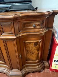 Credenza anni 70 in puro legno con inserti in radica.Un po' di segni evidenti.