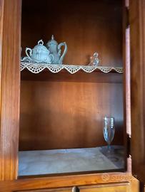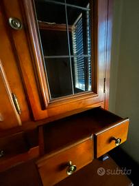 Credenza in noce. Dimensioni: profondità cm 45. Larghezza cm 133 circa. Altezza totale cm 203.(la parte bassa cm 83 . La parte alta cm120)
