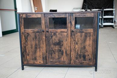 Credenza di design industriale con ante in vetro per cucina, soggiorno, sala da pranzo, corridoio. Già montata.