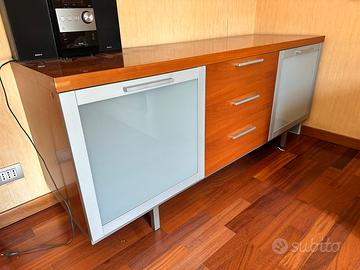 Vendo moderna credenza in legno dalle linee semplici e funzionali, ideale per arredare soggiorno, cucina o sala da pranzo.