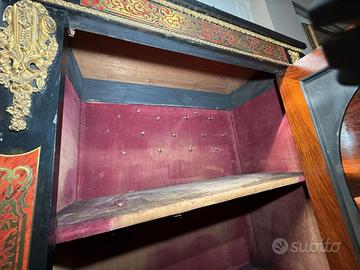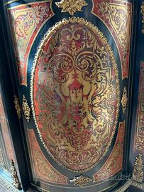Mobile in legno ebanizzato con raffinata marqueterie Boulle in ottone inciso e materiali originali dell’epoca, arricchito da bronzi dorati originali.