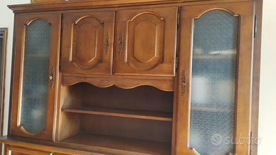 Credenza Napoletana in legno con base a 4 ante e vetrina rialzata a 4 ante. lunghezza 220 cm larghezza 44 cm altezza 217 cm Ritiro presso abitazione