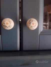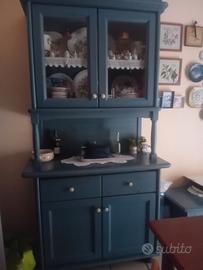 Credenza artigianale di colore azzurro petrolio con pomelli in ceramica.