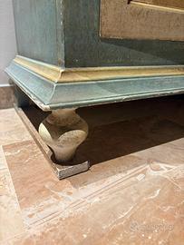 Finitura:laccatura antichizzata con patina verde-azzurra e avorio.