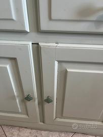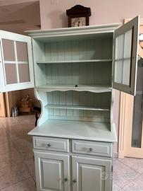 Vendo credenza per casa, colore verde acqua, con alcuni difetti visivi (in foto), è un pezzo artiginale, con la possibilita di separare la parte inferiore da quella superiore.