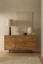 La credenza in legno di acacia Petter è il pezzo che il tuo soggiorno stava aspettando. Semplice, ma con quella personalità che solo il legno di acacia può offrire. La texture delle sue venature naturali e il suo tono caldo daranno un tocco di novità a qualsiasi ambiente , trasformandolo in un luogo accogliente ed elegante. Poggia su gambe in ferro che non solo gli conferiscono stabilità, ma gli conferiscono anche un tocco moderno ed elegante. Dotata di tre ante e di un ingegnoso sistema di apertura a chiodo , questa credenza nasconde al suo interno un'ampia capacità di contenimento. Immagina di avere tutti quegli oggetti essenziali a portata di mano, ben organizzati e lontani da occhi indiscreti. Il suo design è pratico e pensato per i veri amanti dell'ordine, consentendo a ogni cosa di avere il suo posto specifico. Il meglio: la sua struttura è visivamente leggera, ma robusta nella sua fabbricazione. Questo equilibrio lo rende il complemento d'arredo perfetto che vi accompagnerà per anni. Pensa a tutti i modi in cui potresti personalizzarlo aggiungendo i tuoi accessori preferiti, creando un angolo davvero unico. Lascia che Petter definisca il carattere e il buon gusto della tua casa.
