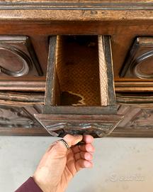 Credenza barocco piemontese del ‘700, XVIII SECOLO, finemente intagliata nella parte bassa , nei fianchi e nella parte superiore dive si trovano i cassetti. In massello di noce tutta originale in buono stato complessivo. Larghezza 170 Altezza 223 Profonda 57 Disponibile ad inviare video e foto del mobile solo su richiesta telefonica al numero 3925977091 (Federica). E possibile il ritiro e/o la spedizione prezzo da concordare in base alla distanza e tipo di invio, il prezzo della spedizione indicato qui e puramente INDICATIVO. Sono un azienda, contattatemi telefonicamente senza alcun impegno .