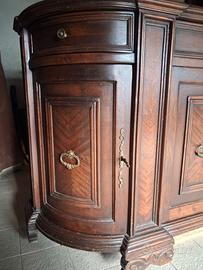 Vendo credenza arredamento vintage, in ottime condizioni, con chiavi originali e ottime finiture, più coppia di poltrone stile chippendale ben conservate. Presentano normali segni del tempo ma nessun danno o strappo.