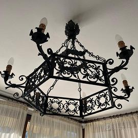 Credenza piu tavolo in stile liberty più lampadario a sei luci in ferro battuto a € 300 vendibili separatamente . Trasporto a carico del acquirente