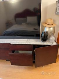 Credenza in legno wenge piano in marmo 2 casstti 2 cassettoni e 2 ante con 2 ripiani.