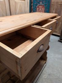 Bellissima e difficile da trovare, credenza portasecchi con cassetti in abete d'arte povera. Restaurata, trattata antitarlo e cerata. Misure 44x120xh123
