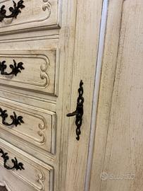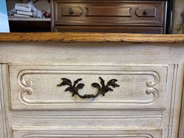Credenza Originale Provenzale con piano in Rovere Massello e maniglie in originali d'epoca , finitura bianco Francese patinato !!!