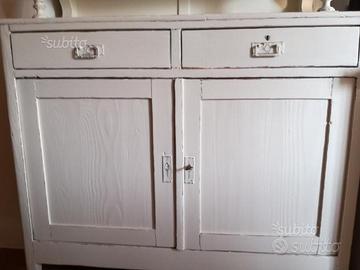 Vendo credenza stile provenzale colore bianco champagne. Mobile epoca fine '800 ripatinata, mobile in stile shabby chic color champagne. Perfettamente restaurato e foderato all'interno. Molto capiente, adatta per completare la cucina come dispensa. Misure 2,56m x 1,24m x 0,50m