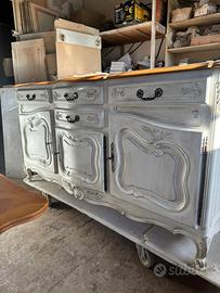 Credenza originale provenzale recuperata nel sud della Francia e ridecorata a meno nel nsotro laboratorio, il sotto è composto da un bianco francese patinato il piano invece è stato lasciato a legno naturale