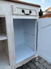 Credenza priginale provenzale recuperata nel sud della Francia e ridecorata a mano nel nostro laboratorio, con tanto si parinatura bianco Francese nella parte del corpo e piano lucidato e lasciato a legno naturale