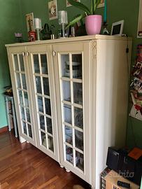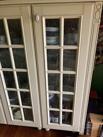 Credenza da cucina molto spaziosa in buono stato come da foto, un piano con cristallo sbeccato. Dim 145x60x148h