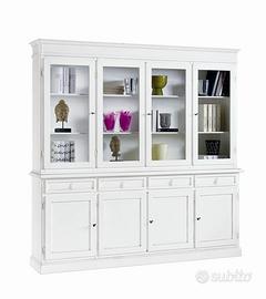 La vetrina è composta da quattro ante vetro con due ripiani divisori interni.