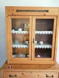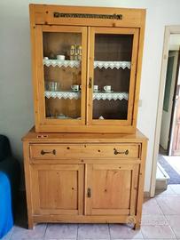 Credenza della nonna composta di due unità, cassettone base inferiore e vetrinetta superiore. Le misure della credenza sono: altezza 97, profondità 53, larghezza 115. La vetrina è alta 113 profonda 35 larga 100.