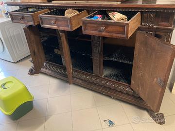 Credenza antica die corpi di grandi dimensioni legno massiccio noce dimensioni 230x60x120