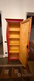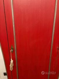 Vendesi credenza, come nuova, rossa con profilo argento. Misure: Larghezza 69 cm Altezza 2 metri e 4 Spazio tra le mensole 31 RITIRO SUL POSTO!