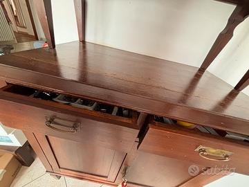 Vendo splendida credenza in stile rustico,tipica romagnola,realizzata in legno massello con ante a vetro nella parte superiore e cassetti spaziosi e ante in legno nella parte inferiore. Ottime condizioni,ideale per cucina o taverna.