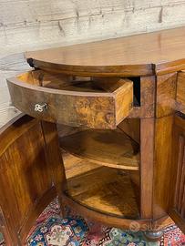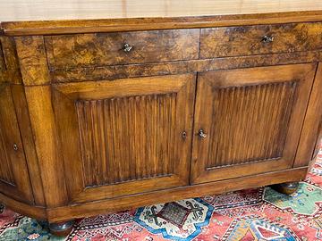 Credenza in noce della prima metà del 1800, in buone condizioni ma non restaurata. Dimensioni massime di ingombro 204 × 57 cm ed altezza 100 cm