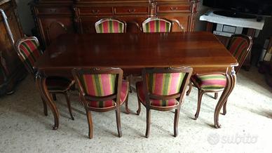 In aggiunta anche il Tavolo rettangolare di lungh.cm185 x largh.cm86 x h.cm80 in noce massello patinato e 6 Sedie in noce massello patinato foderate in velluto
