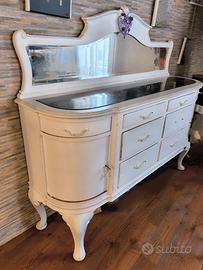 vendesi credenza stile shabby, bianco con marmo venato nero e bianco. compreso di specchiera. 225L x 100H x 43 prof.