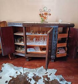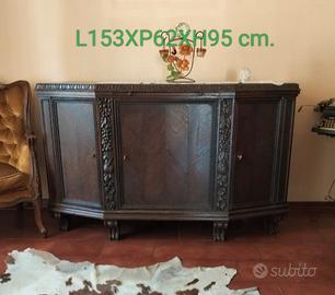 Bella credenza antica in legno massello, con intarsi e piedi a zampa. Epoca fine ‘800, stile vittoriano.