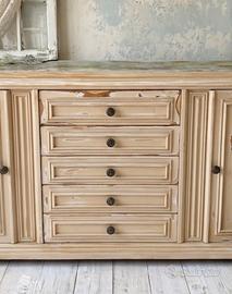 credenza buffet shabby con ripiano in resina epossidica effetto pietra lavabile. L 210 x 41 x H 87 ripiani interni, pezzo unico,in perfetto stato. Non spedisco per info su WhatsApp 3392998537 Loano SV