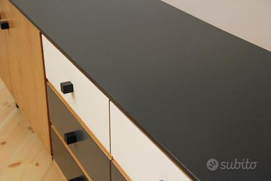 Sideboard Rework realizzata su moduli in legno di frassino impiallacciato.