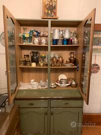 Snaidero Modello Old America credenza con vetrina Dim: 91,5 h sotto + 118 h sopra, prof 61 sotto e 34 sopra, largh 110,5 Disponibile nello stesso stile anche - 1 tavolo Snaidero modello Old America , diam tavolo 115, h 78o - 4 sedie con braccioli