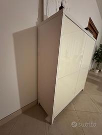 Credenza soggiorno/mobile, salotto con ante laccato avorio e copertura degno bianco Misure: 126 x 136 x 42 altezza Apertura ante con Push and Pool