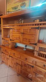 Bellissima credenza spagnola in legno massello in perfette condizioni così composta: BASE:lunghezza 2 m,h.79cm,prof.39 ALZATA: lunghezza 183cm,h.108cm,prof.36 Altezza totale mobile base +alzata così come foto 187cm Valore superiore ai 2000 euro vendo a 400 € solo realmente interessati no perditempo
