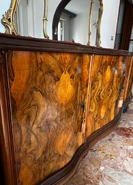 Credenza impiallicciata in radica di noce con specchiera rifinita. Unico proprietario.