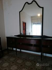 VENDESI CREDENZA CON SPECCHIERA SAGOMATA,EVENTUALMENTE SEPARABILE ED UTILIZZABILE ANCHE A PARTE.STILE INGLESE ,RISALENTE ANNI'50 INTERAMENTE IN MOGANO CON RIPIANO RICOPERTO IN VETRO.DUE ANTE CENTRALI E DUE LATERALI. DIMENSIONI: H 96; PROF.52; LUNG.2,47. SPECCHIO H.1,48 E LARG.1,22. RICHIESTA EURO 150.TRASPORTO A CARICO ACQUIRENTE