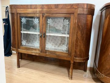 Causa trasloco, vendo credenza con alzata (a due corpi divisibili) in noce. Entrambi i corpi sono stati soggetti a trattamento anti-tarli e la parte inferiore è stata restaurata nel 2006.
