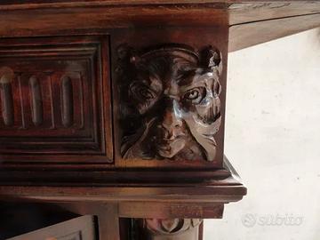 Credenza in legno massello intarsiato in stile rinascimentale fiorentino. Fabbricazione XIX secolo. Buono stato di conservazione, con qualche leggerissimo segno del tempo.